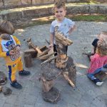 Am Abend fand dann unser gruppeninternes St.-Martinsfest statt, diesmal mit der Edelstein-Gruppe zusammen. Zunächst aßen wir gemeinsam bevor wir Lieder sangen und unseren Laternenumzug um das Lagerfeuer liefen. Am Ende sangen wir auch ein Lied zusammen mit den Eltern am Feuer bei Gitarrenbegleitung.