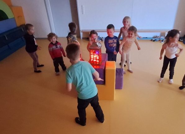 Am Morgen des 11.11. spielten wir Mal Stopptanz auf andere Weise. Nur wenn die Laterne rot leuchtet muss gestoppt werden.
